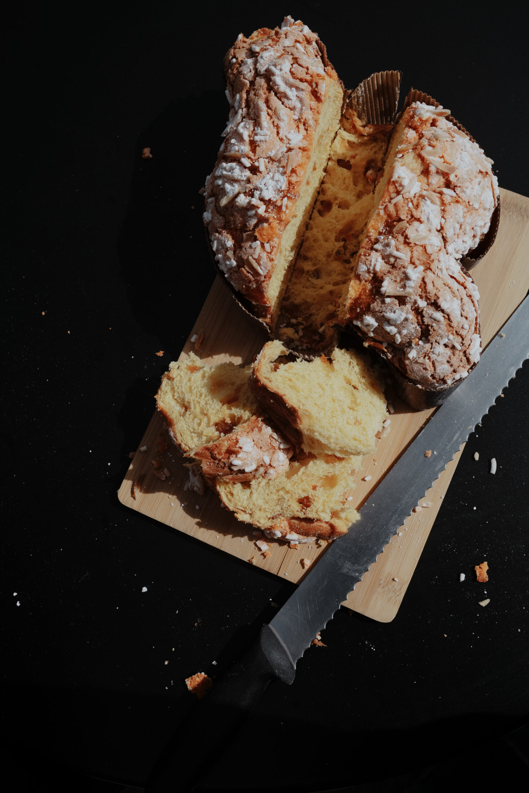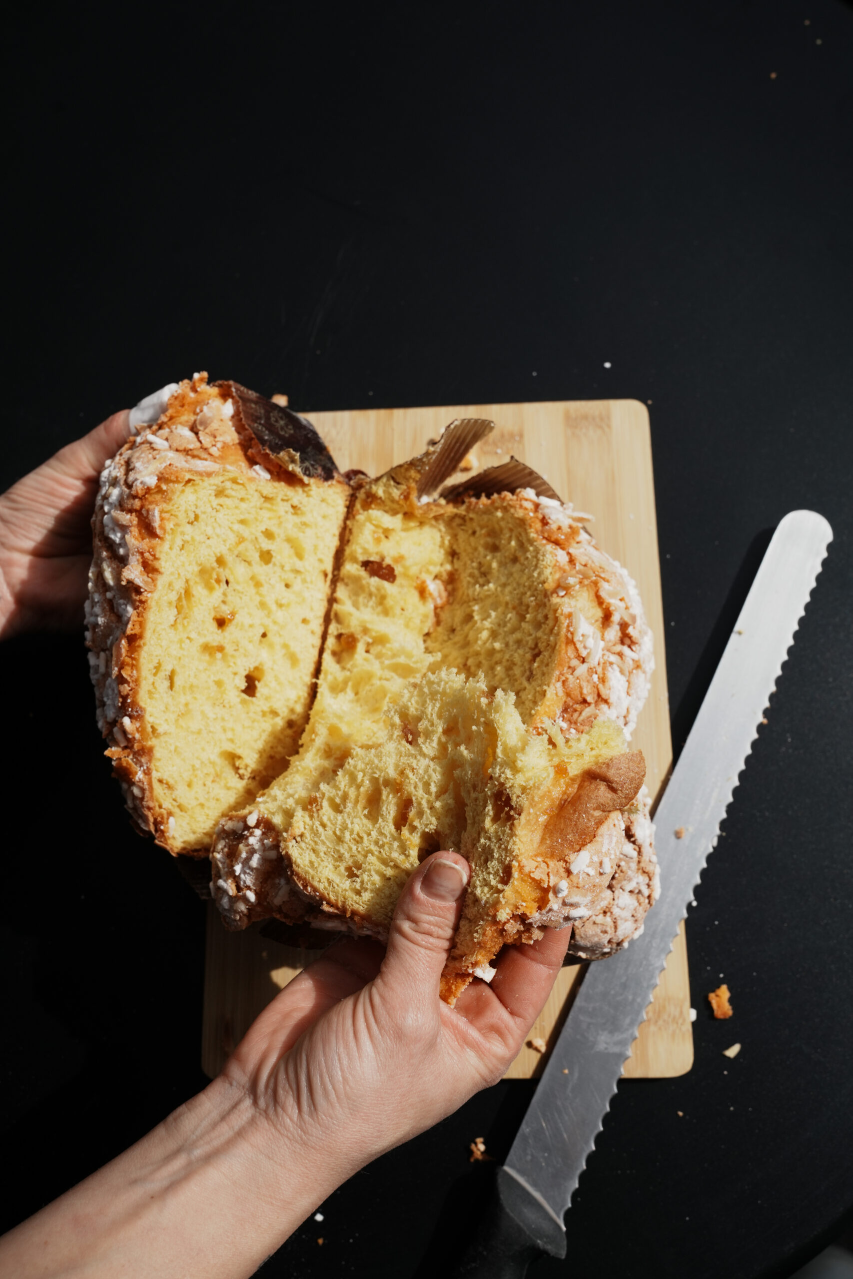 Colomba con albicocca semi candita, un soffice impasto arricchito da ingredienti di prima qualità come la vaniglia ed il miele millefiori, ricoperta di una croccante ghiaccia alle mandorle e granella di zucchero.